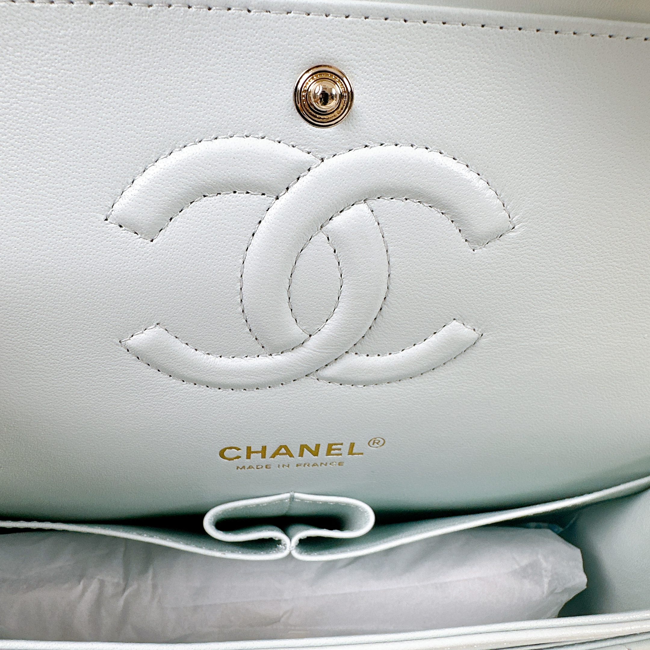 Chanel Green Iridescent Quilted Leather Medium Classic Double Flap Bag
